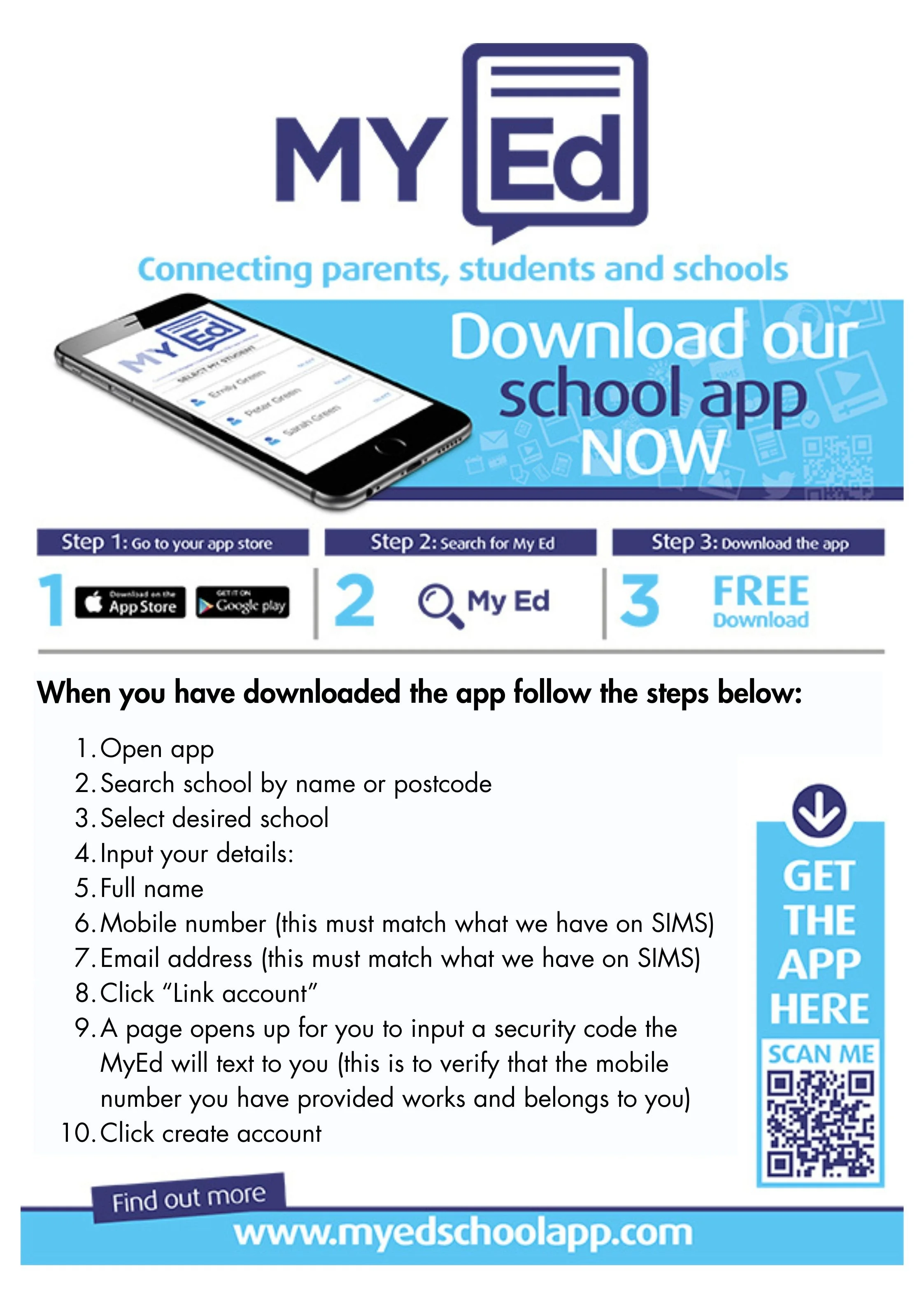 Sign up to MyEd, our parental engagement app that allows two-way communication between parents and the academy.